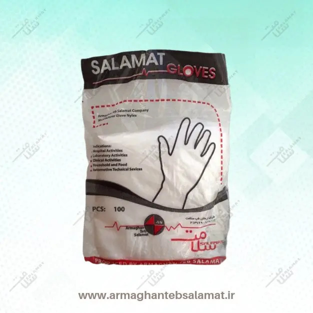 دستکش نایلونی سلامت از جنس پلاستیک میباشد. و در انجام کارهایی که نمیخواهیم دستمان در طی آن آلوده و کثیف شود، به کمک مان می آیند.